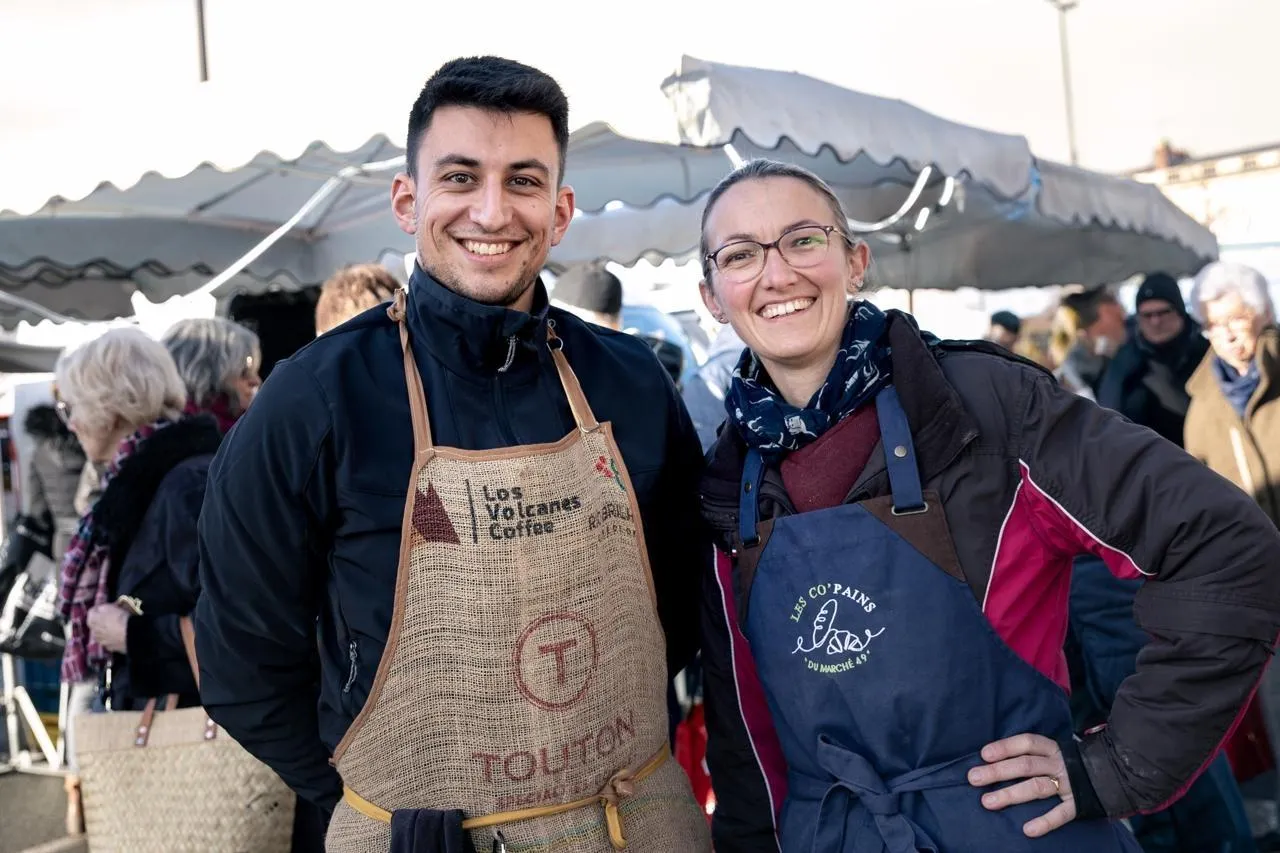 Alexandre Guilleminot et Aline Deniau, commerçants sur le marché de la place Leclerc à Angers, ont secouru et probablement sauvé la vie d’une cliente victime d’un arrêt cardiaque. © CO - Régine Lemarchand