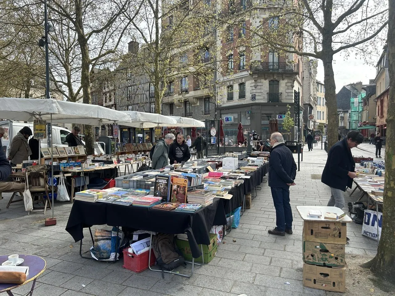 Le marché aux livres de la place Sainte-Anne est un passage incontournable pour les amoureux des livres. À noter qu’il est quasiment le seul marché quotidien de France. Pas étonnant que bouquinistes et Rennais y soient attachés. Les commerçants ambulants doivent reverser une petite somme aux placiers, de passage en fin de matinée, pour encaisser leur droit de place ; autour de 3 € par jour.