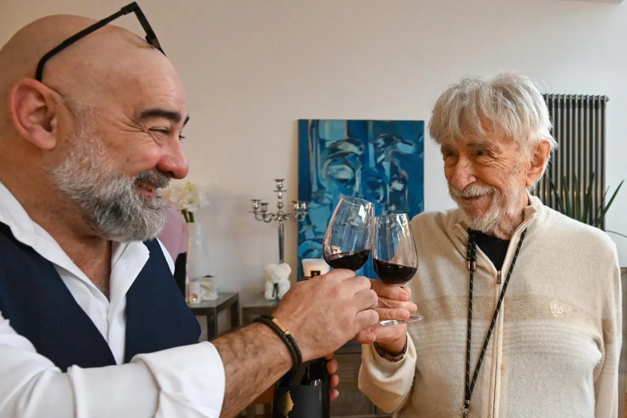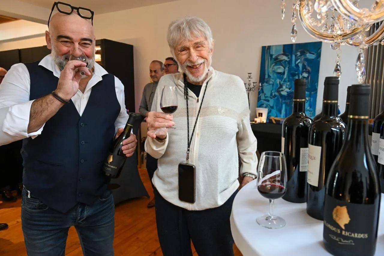 Angers, le 19 janvier 2026. Agent du domaine de l’Evêque depuis toujours, Sébastien Détriché avait invité l’acteur-vigneron Pierre Richard pour une dégustation de ses cuvées. © CO - Laurent COMBET