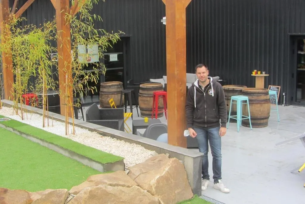 Mathieu Beaumont sur la terrasse de la Cav', prête à accueillir les clients. Trois autres personnes assurent le service, dont une au magasin. © Ouest-France