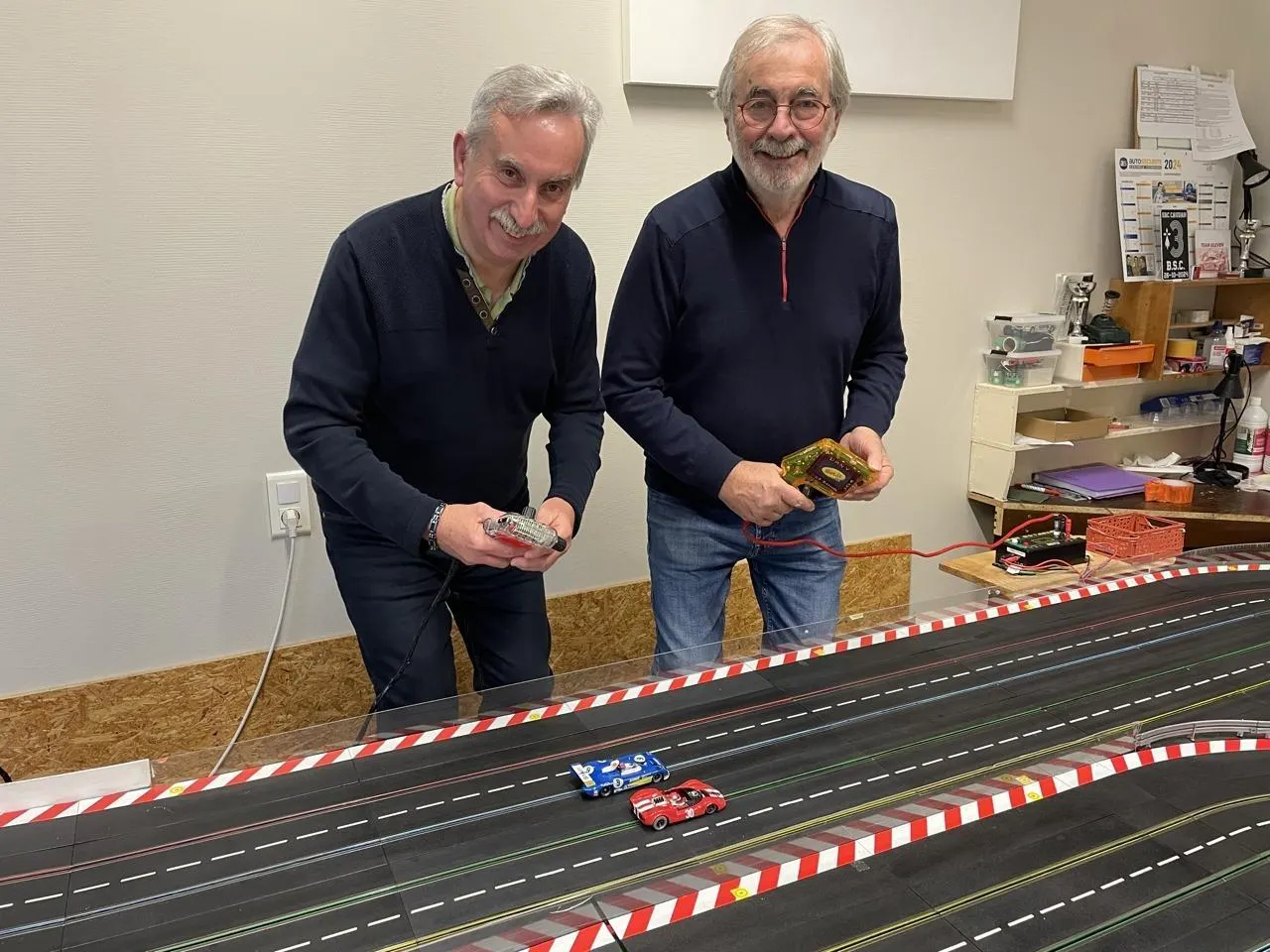 Pascal Primault et Dany Fort s’adonnent chaque semaine à leur passion du slot race. © Ouest-France