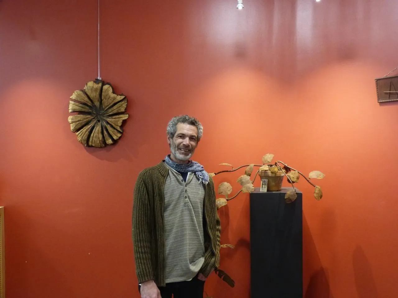 Et ces belles choses, il les expose donc dans la galerie de l’espace Senghor. Des totems, tableaux, panneaux et surtout des fleurs : C’est ma période fleurs en ce moment.