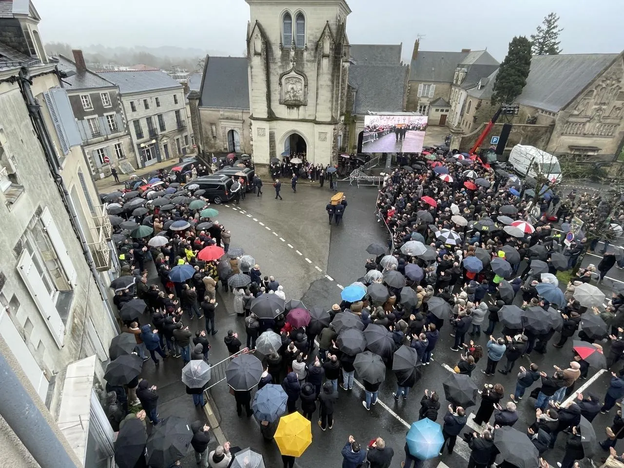 Près de 2 000 personnes ont rendu hommage à l’inventeur du chariot élévateur à mât et fondateur de Manitou, Marcel Braud, mardi 10 février 2026. L’église d’Ancenis étant trop petite, plus d’un millier d’entre elles a suivi la cérémonie depuis la place Saint-Pierre.