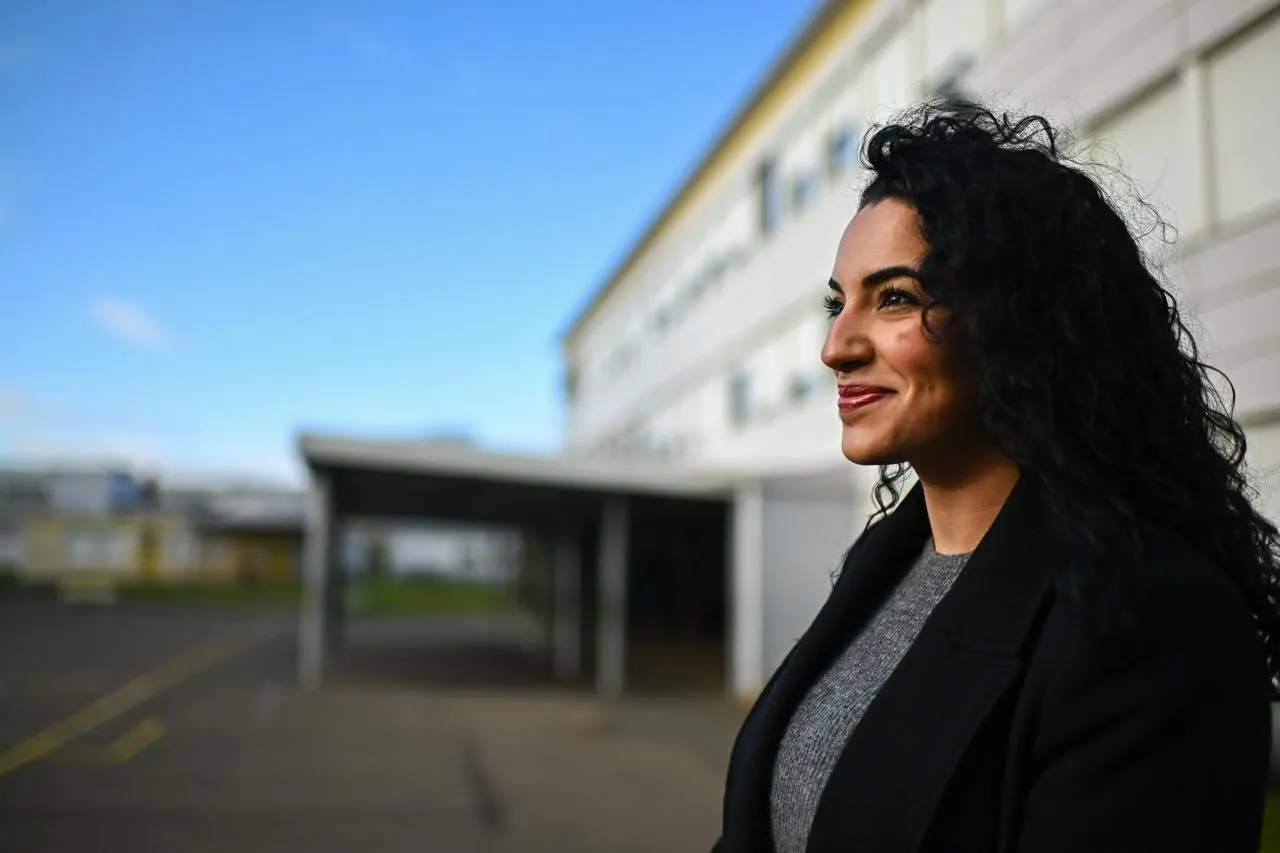 Portrait d’Imane Bounouh qui a créé un compte Instagram à succès pendant ses études. Elle est attachée parlementaire et de retour au collège Joséphine-Baker, son collège au Mans. © Franck Dubray / Ouest France