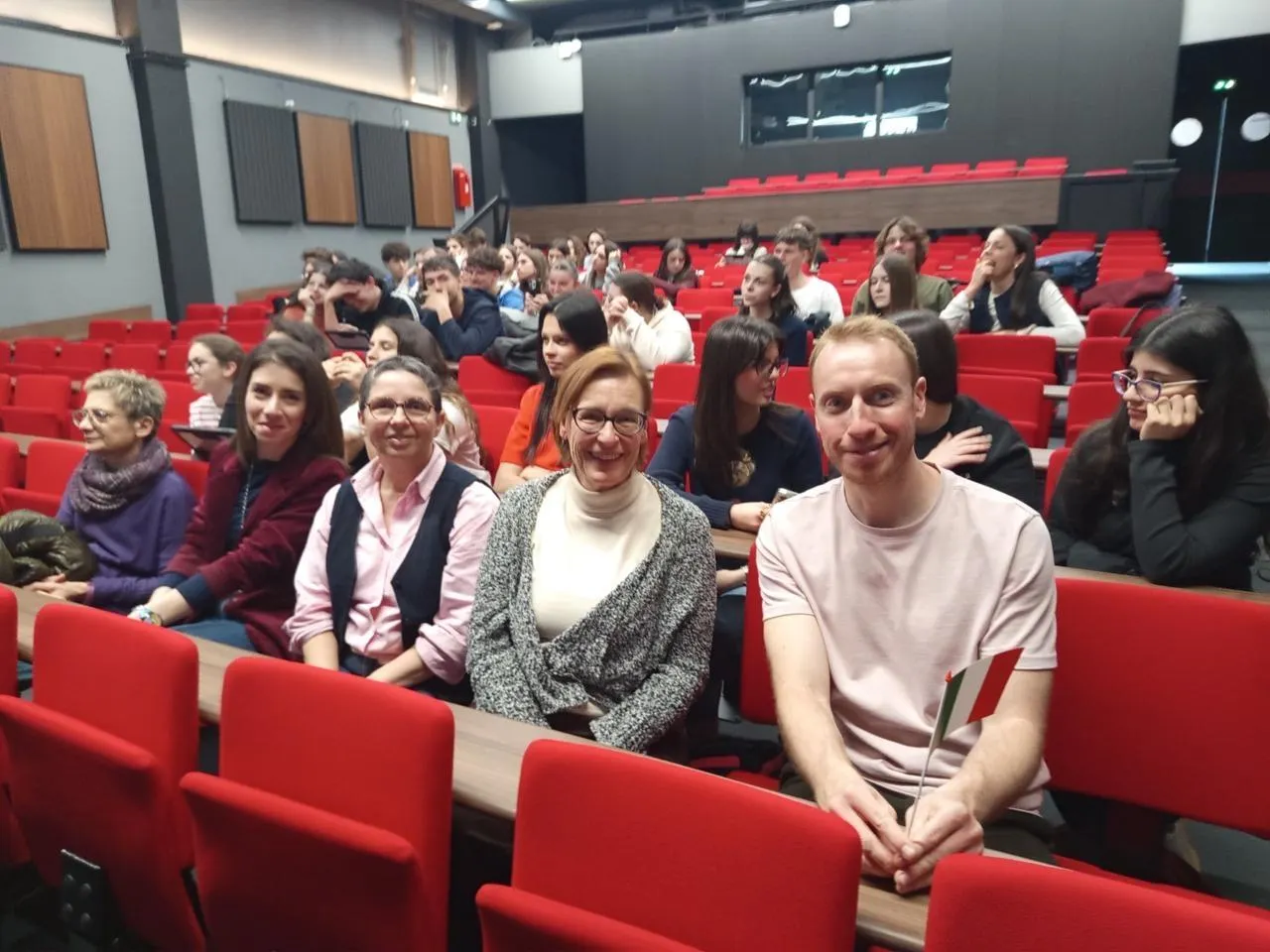 Trois lycéennes italiennes de 17 ans ont souhaité préciser dans un français très correct que l’accueil des correspondants français et de leurs familles était très satisfaisant dans un climat apaisant. Elles ont souligné la bonne entente avec les élèves français, ce qui facilite l’apprentissage de la langue française et permet d’améliorer la connaissance de la culture française.