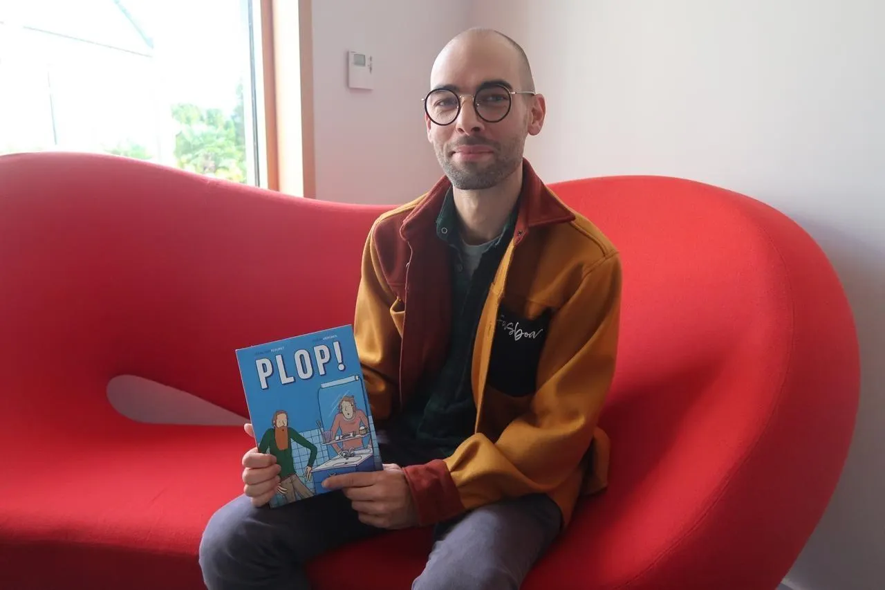 Mazé, le 23 septembre 2025. À la fois dessinateur et musicien, Simon Vergnol, ici avec sa première BD, viendra à la rencontre des lecteurs de La Bulle, ce 10 octobre. © CO – Agathe LE NUEFF