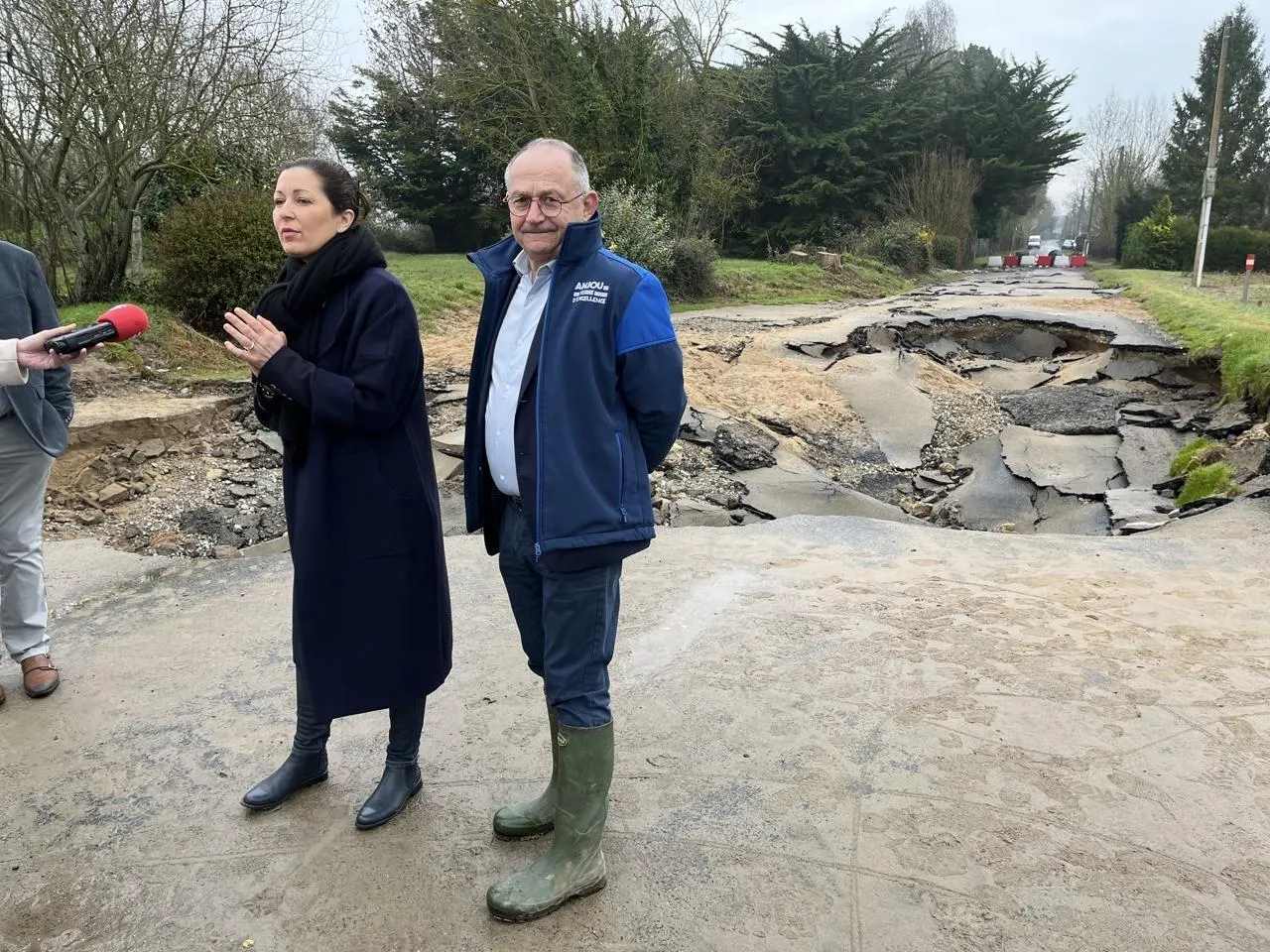Ce vendredi 6 mars, Florence Dabin, présidente du Département, et son vice-président Gilles Piton se sont rendus route des Bas à Juigné-sur-Loire, coupée depuis les récentes inondations. © CO