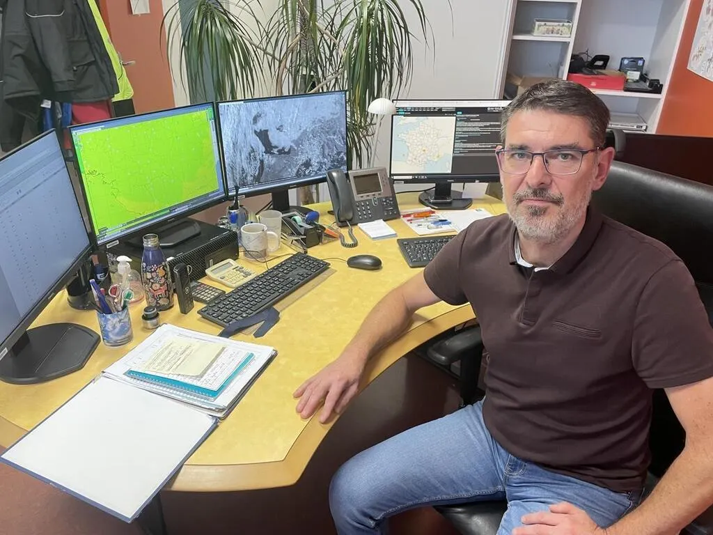 Laurent BelsÅ“ur, météorologue conseil à Météo-France, dans son bureau du Service départemental d’incendie et de secours (Sdis) de Beaucouzé. © Ouest-France