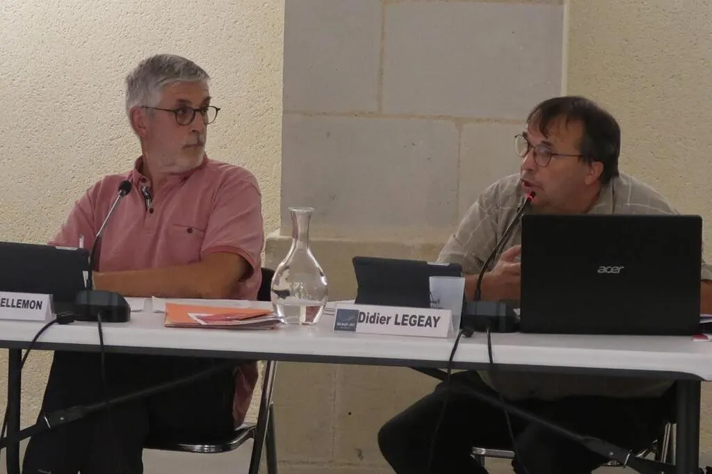 Beaufort-en-Anjou, décembre 2024. Le maire de Beaufort-en-Anjou Alain Dozias (à droite), accompagné de son premier adjoint Rémi Godard, s’inquiètent de l’augmentation des tarifs d’assurance pour la couverture des agents de la Ville. © CO – Agathe LE NUEFF