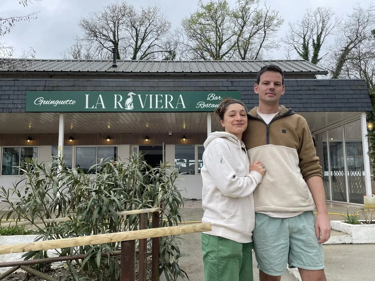 Léo et Floriane achèvent les aménagements. La guinguette La Riviera ouvrira ce jeudi 12 mars pour une nouvelle saison. © CO