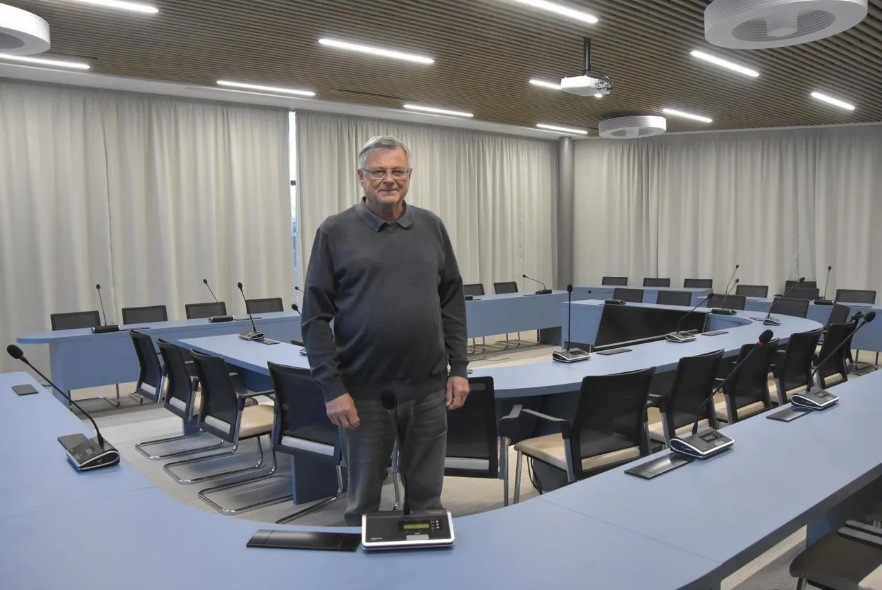 Gilles Grimaud, président d’Anjou bleu communauté, dans la salle du nouveau siège de la communauté de communes. © CO - Joël Audouin