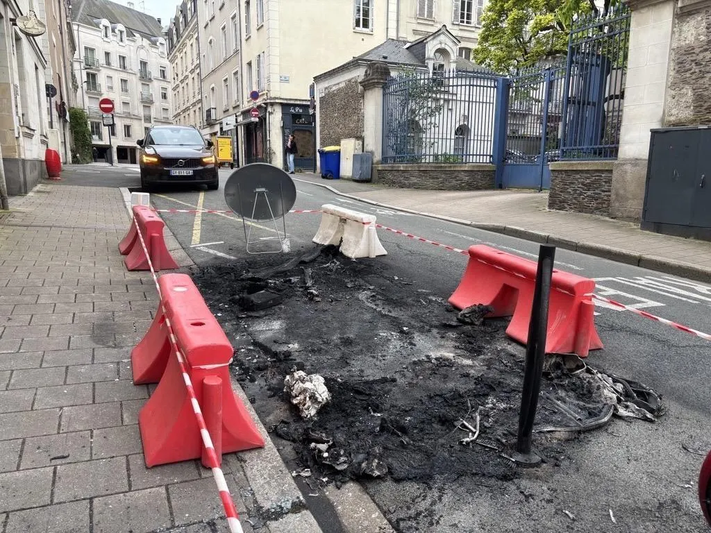 Une voiture a été incendiée dans la nuit du 30 au 31 mars, rue Chevreul, à Angers. ©  CO - Anthony Pasco
