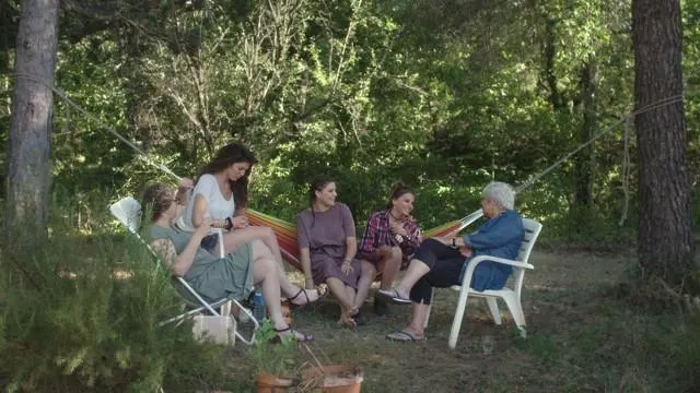 Le documentaire « Mauvaises filles » d’Émérance Dubas filme des anciennes pensionnaires du Bon Pasteur. Ici, Michèle (en bleu à droite) raconte à ses petites-filles et sa fille les maltraitances subies. © Arizona Distribution