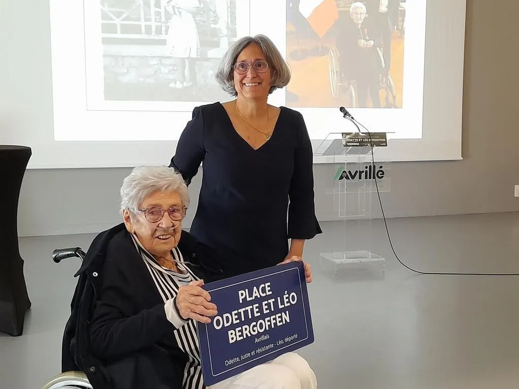 Jeudi 22 mai, lors de la cérémonie de dénomination de la place Odette-et-Léo-Bergoffen, Caroline Houssin Salvetat, maire d’Avrillé (près d’Angers, en Maine-et-Loire), a salué, en présence d’Odette Bergoffen et de sa famille, « son combat pour la tolérance, le courage de dire non face à la haine, le courage de défendre la liberté, l’égalité quelle que soit sa religion, et de garder ...