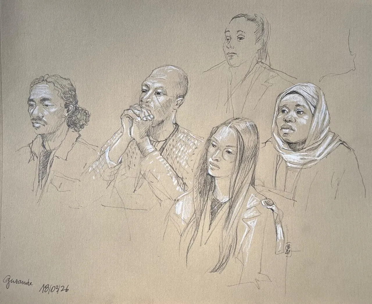 La famille d’Ismaël Soulemane a déposé à la barre ce jeudi 19 mars avant les plaidoiries des parties civiles. © Dessin Clémence Banvillet