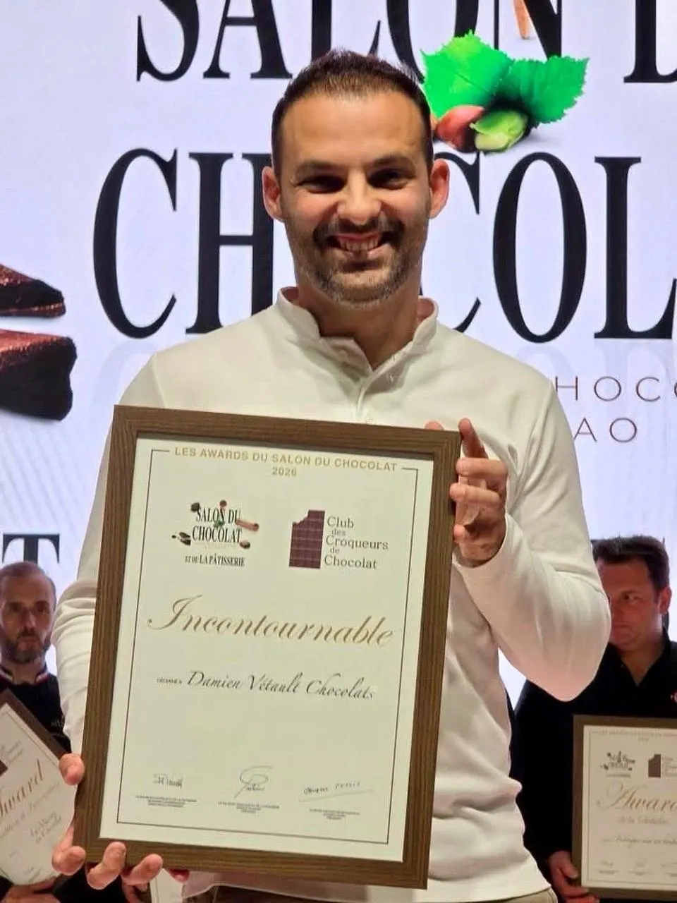 Damien Vétault lors de la remise de récompense, ce week-end, au salon du chocolat porte de Versailles, à Paris. © Damien Vétault