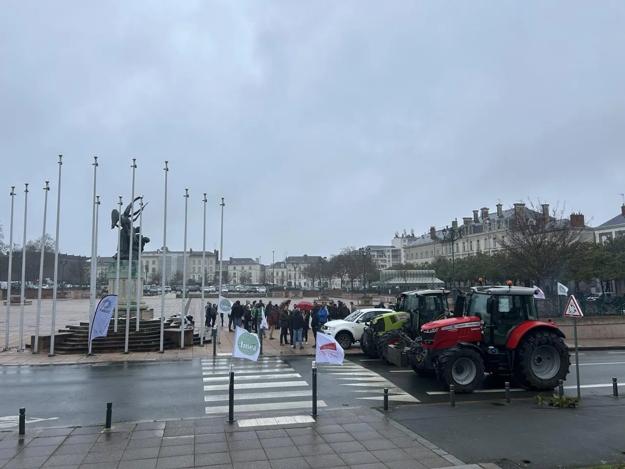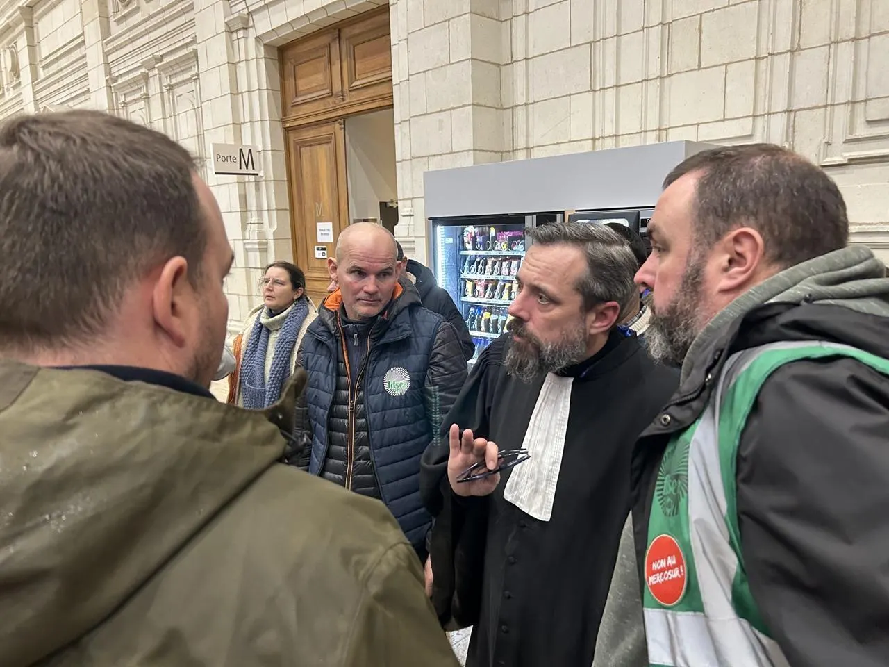 photo  en soutien à leurs collègues poursuivis pour entrave à la justice, près de 80 agriculteurs se sont réunis devant le palais de justice d’angers, jeudi 8 janvier 2026.  ©  co 3