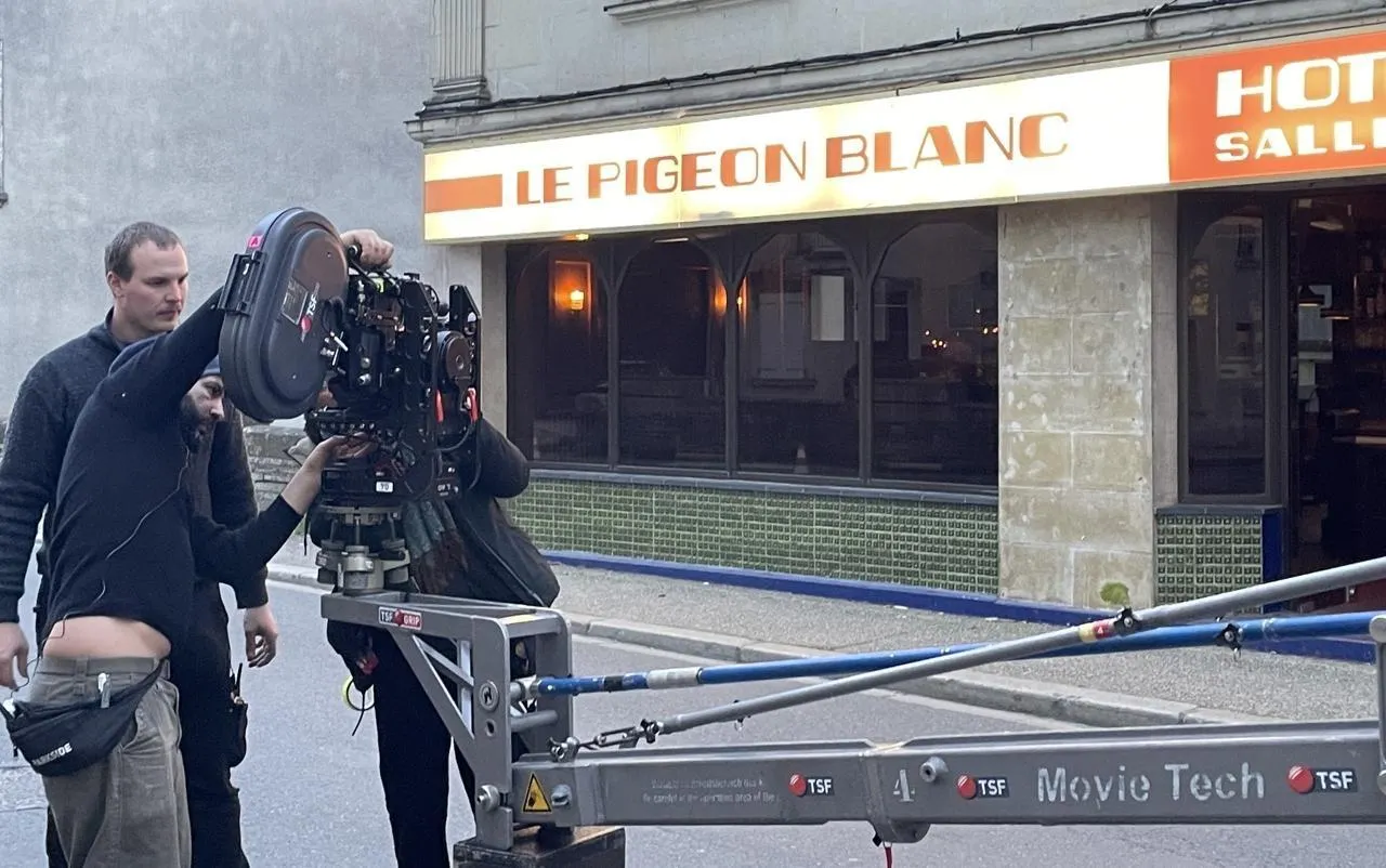 Du 12 février au 13 mars 2026, Le Pigeon blanc et la rue du commerce à Vern-d’Anjou (commune déléguée d’Erdre-en-Anjou) ont accueilli le tournage de Mariage au goût d’orange, le prochain long-métrage de Christophe Honoré. © Ouest-France