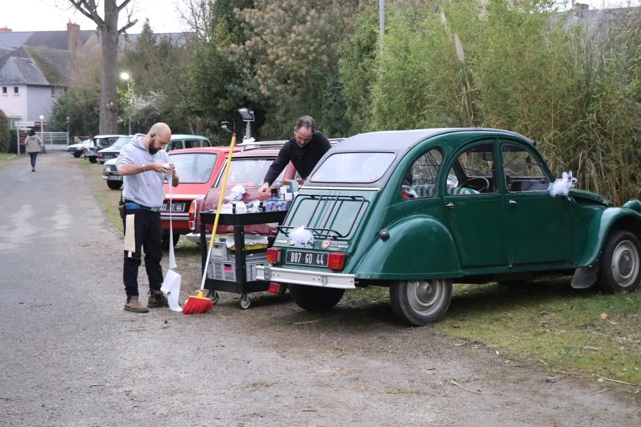 Vendredi 6 mars, début de soirée, les équipes préparent les voitures du mariage sur le parking du Pigeon blanc, à l’abri des regards. Ouest-France