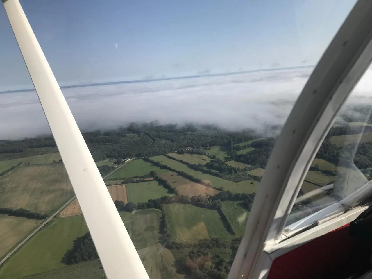 En regardant le sol depuis son ULM, Jean Troadec voit une grande carte qui se déroule sous ses ailes. « Je retrouve mes cours de géographie de l’école primaire avec les grandes cartes où était écrit : grandes cultures, élevage, vignoble… » © CO – Joël AUDOUIN