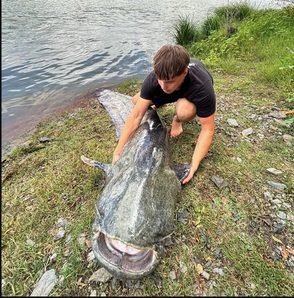 Thibault Saint-Martin, 20 ans, a pêché un silure d’au moins 2,50 m ce jeudi 11 septembre 2025 dans la Maine à Angers. © Ouest-France