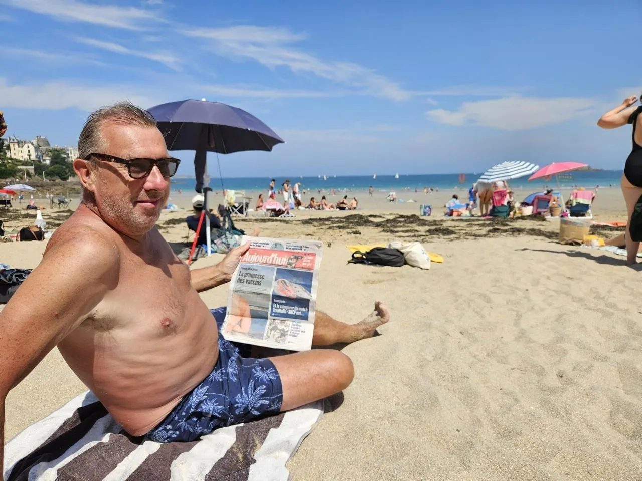 Ici ou là , sur les serviettes, des journaux. Par ici, un Ouest-France plié en quatre, sur lequel Marie et Jérôme sont penchés pour faire les sudokus. Par là , Aujourd’hui en France, que Philippe feuillette. « Ça fait trente ans que je le lis. Le format est pratique, et ça parle de tout », raconte le Rennais.