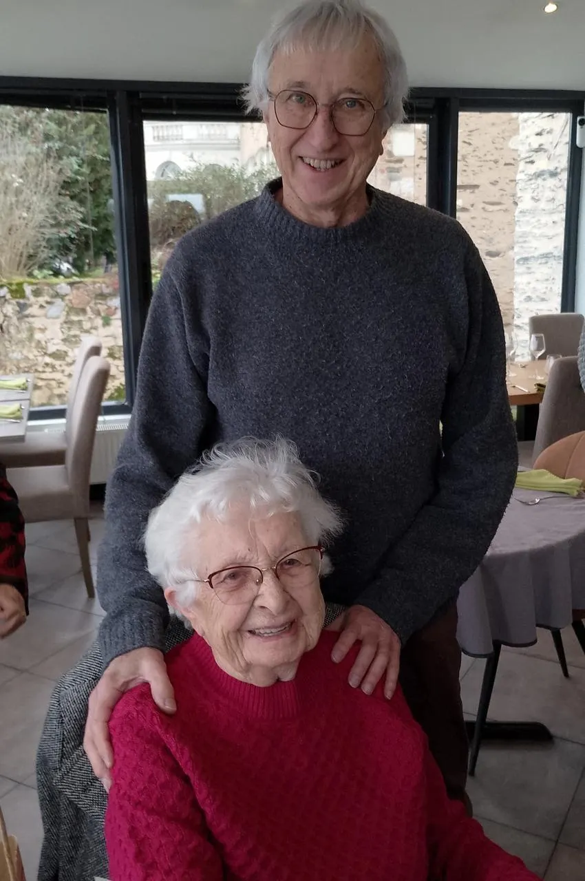 Accompagnée de son fils Vania, Andrée Joloboff a fêté ses 100 ans dans un restaurant de la région angevine © CO.