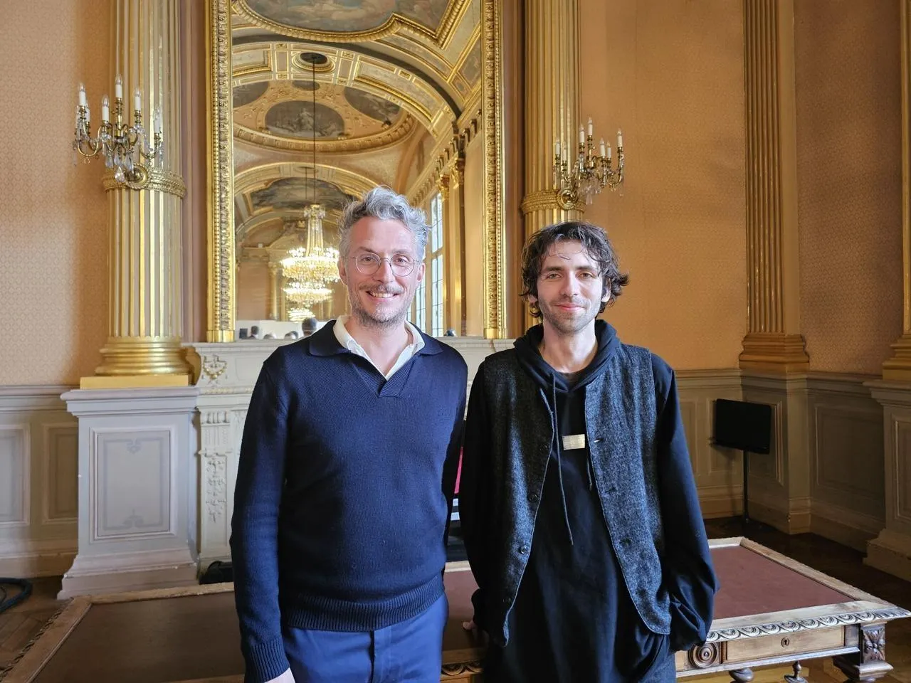 Grand Théâtre, 27 février. L’adjoint à la culture et au patrimoine Nicolas Dufetel et le directeur artistique d’Angers Pianopolis Alexandre Kantorow. © PHOTO Eline DION