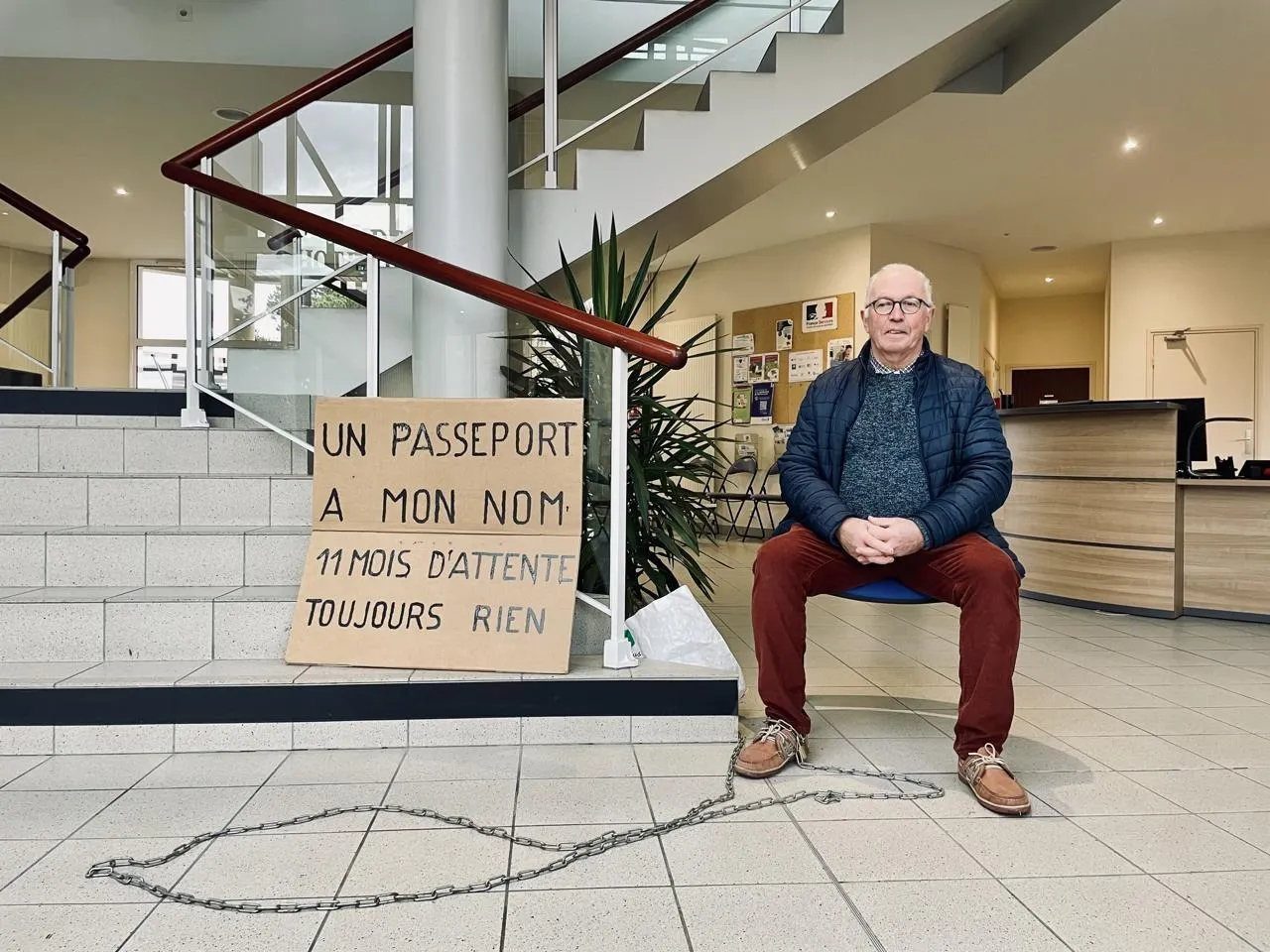 À Saint-Macaire-en-Mauges (Sèvremoine), un homme de 72 ans s’est enchaîné dans le hall de la mairie ce jeudi 15 janvier pour dénoncer une « erreur administrative » qui le prive de carte d’identité et de passeport depuis onze mois. En première ligne, le maire lui a retorqué que la solution n’était pas entre ses mains mais du côté du tribunal d’Angers.