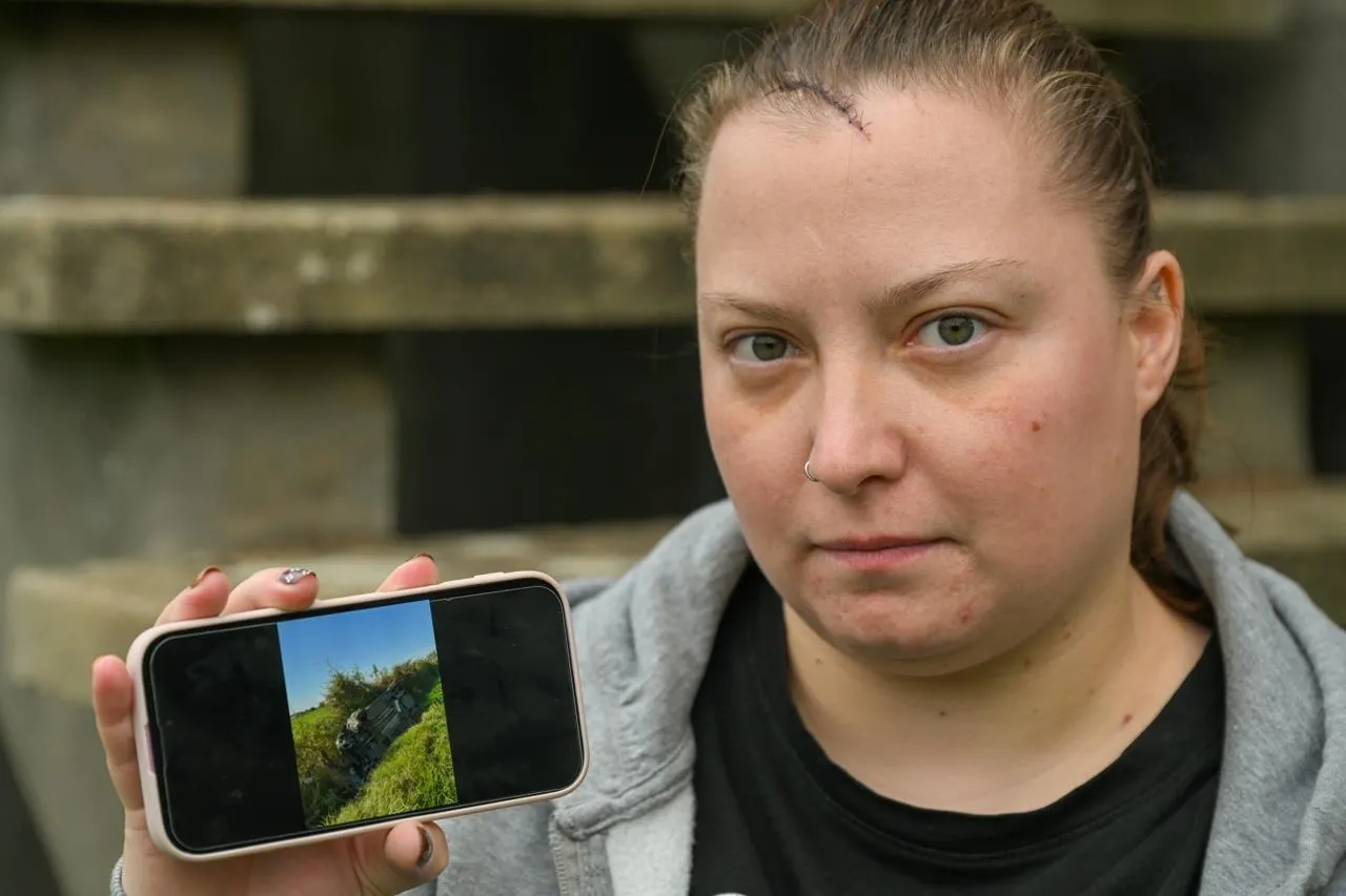 Angers, le 24 septembre 2025. Miraculée d’un terrible accident de voiture, Camille Ereau, 29 ans habitant Beaupréau-en-Mauges, raconte son miracle sur la départementale entre La Chapelle-Rousselin et Jallais. © CO – LAURENT COMBET