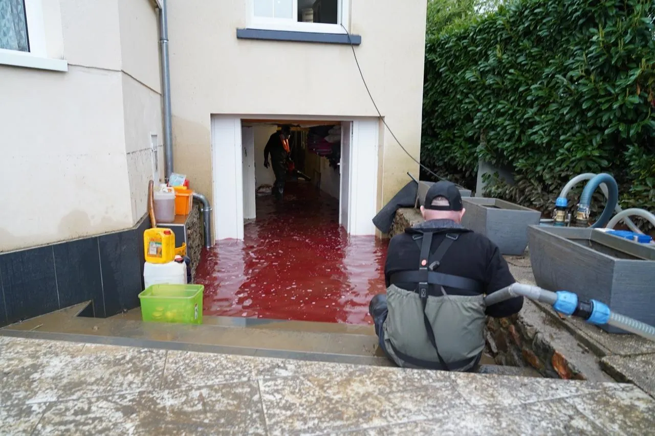 Aux Ponts-de-Cé lors des dernières crues, AMA Dépol est intervenue dans cette maison où le sous-sol et la sortie vers le jardin étaient remplis de fuel domestique. © AMA Dépol