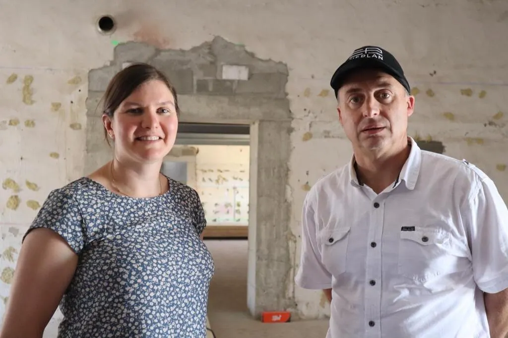 Lucie Bulteau, architecte, et Jérôme Lacoste, maître d’œuvre exécution, veillent à l’exécution des travaux pensés pour garantir des conditions de confort et de sobriété énergétique exemplaires dans cette opération de rénovation intérieure de la mairie. © CO