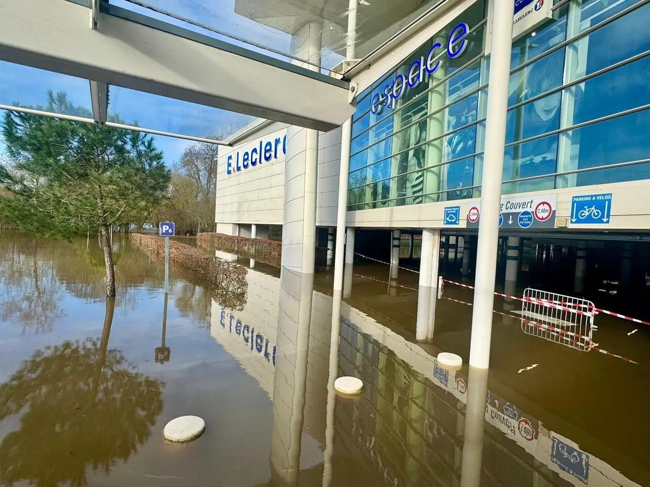« La clientèle nous reste fidèle » : même si son parking est inondé, ce supermarché Leclerc prend son mal en patience... |