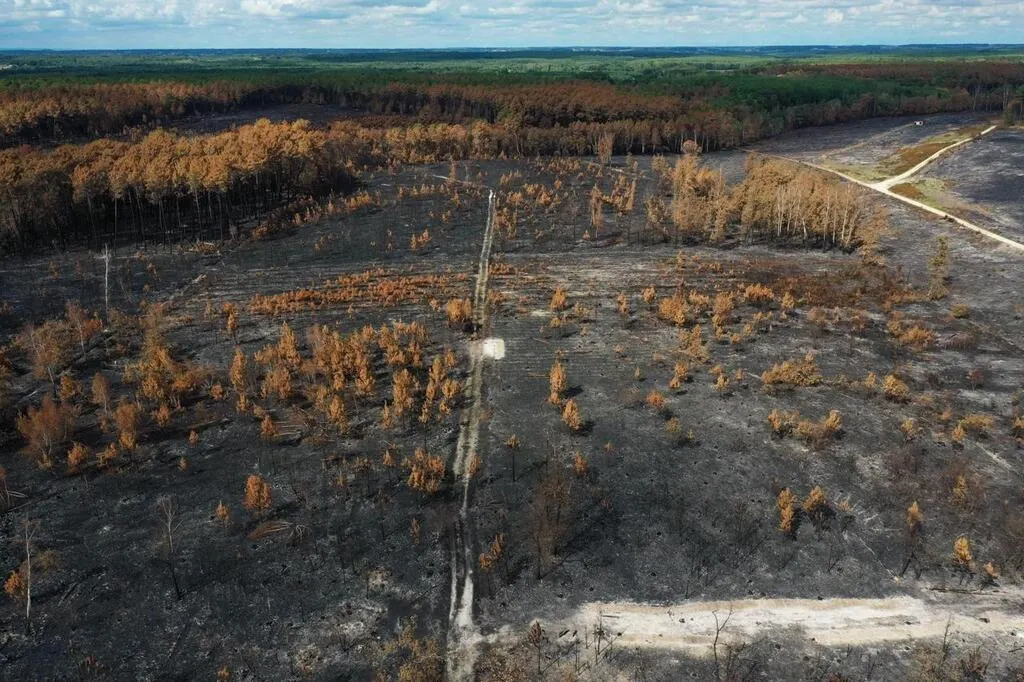 Quinze jours après l’incendie, la forêt de Pugle avait pris un aspect lunaire. © Archives CO – Josselin CLAIR