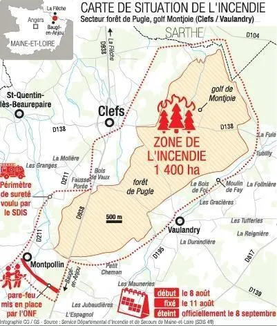 Le 8 août 2022, le feu prenait dans la forêt de Pugle, sur le territoire de Baugé-en-Anjou, dans le Maine-et-Loire. Le début d’un incendie sans précédent qui détruira près de 1 400 hectares de bois et sera fixé au bout de quatre jours d’une lutte intense. Un an après, les blessures sont encore vivaces sur le territoire et chez ses habitants.