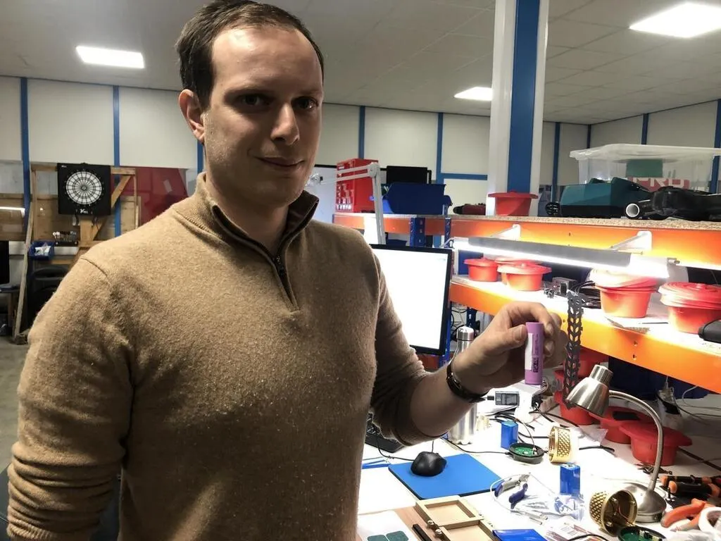 Pour la photo, Alban Regnier tient à la main une petite batterie au lithium qu’il appelle « cellule ». Elle ...