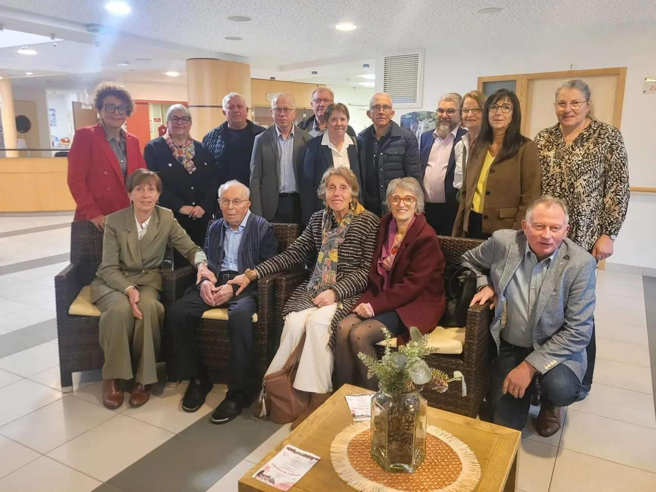 À la résidence Sainte-Marie, Alphonse Brillouet, entouré de ses enfants et conjoints, se prépare à fêter un siècle de vie et de partage, vendredi 13 mars. © CO