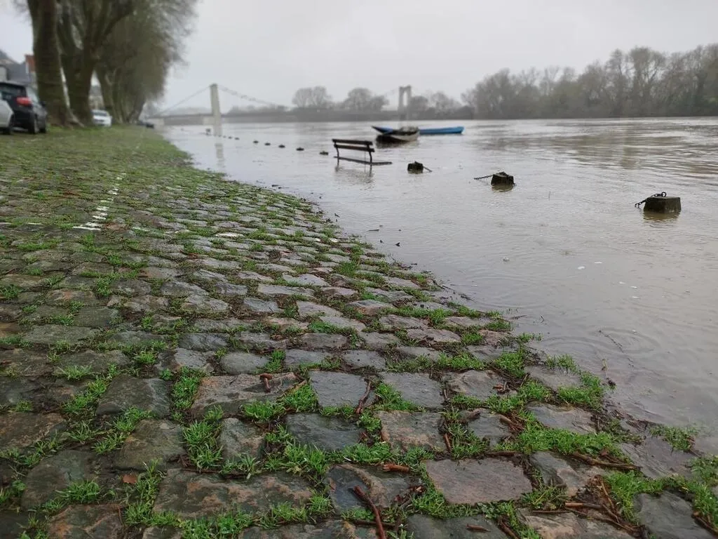 La Loire s’est invitée sur les quais de Chalonnes-sur-Loire. Elle pourrait recouvrir tous les pavés à la fin du week-end. Ouest-France