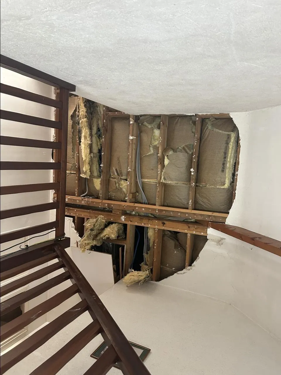 Le plafond de la maison de Denis Perrio, samedi 7 février 2026. Ouest-France