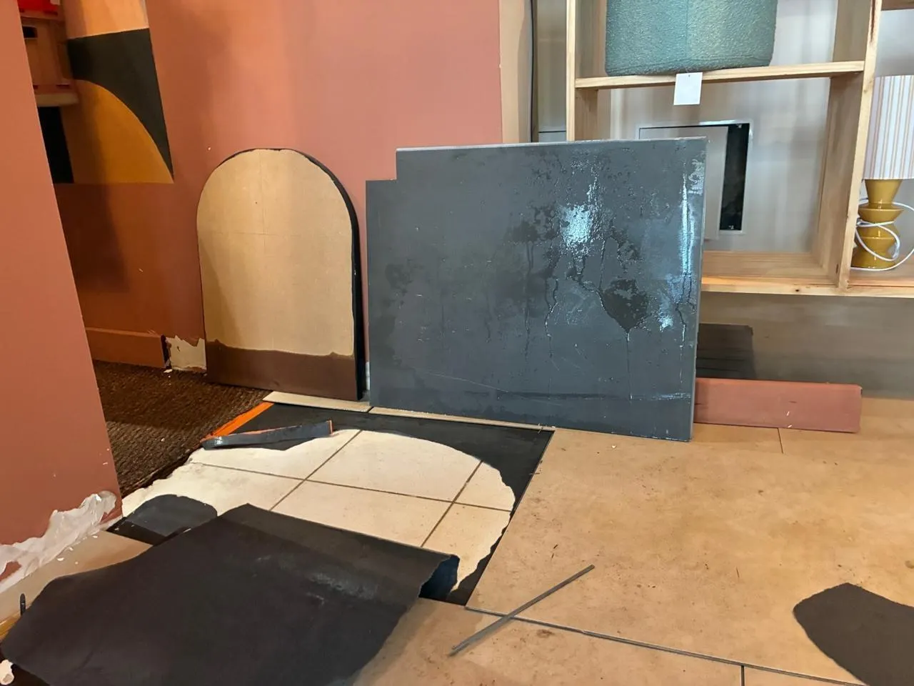 Le sol est l’entièreté du papier peint sont à refaire dans leur boutique. Ouest-France