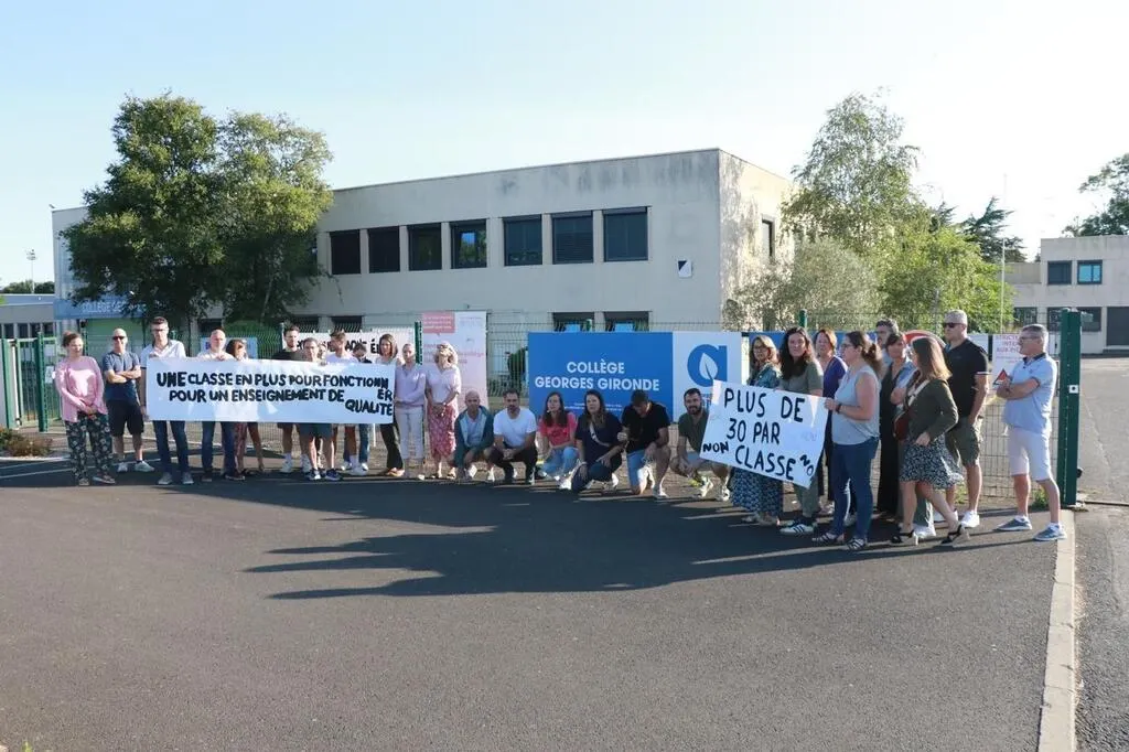 Trente-deux professeurs du collège Georges-Gironde se sont réunis vendredi 4 juillet dans une classe de l'établissement pour mettre en avant la complexité de la situation qui les attend à la rentrée prochaine dans l'état actuel des choses. © Ouest-France