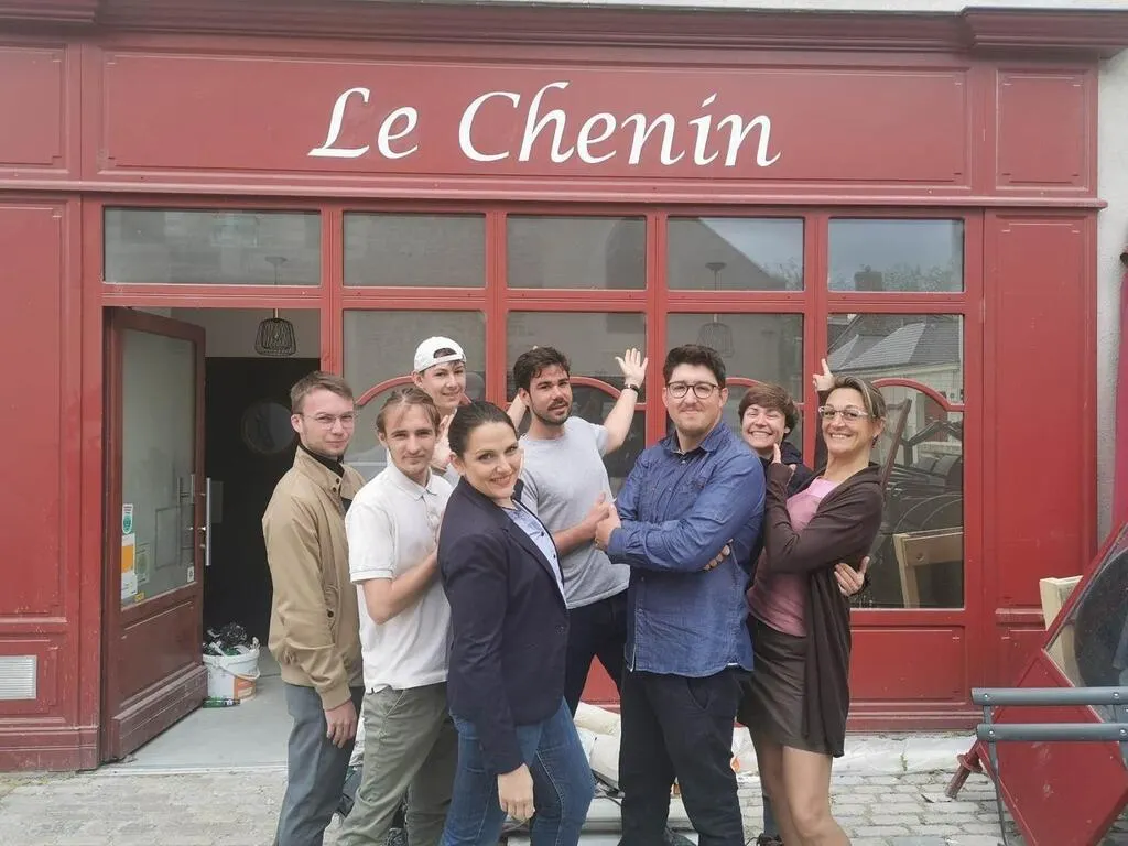 L’équipe devant le Chenin avec, en premier plan, Arthur Favé et Maïté Verriez, les deux cogérants. © Ouest-France