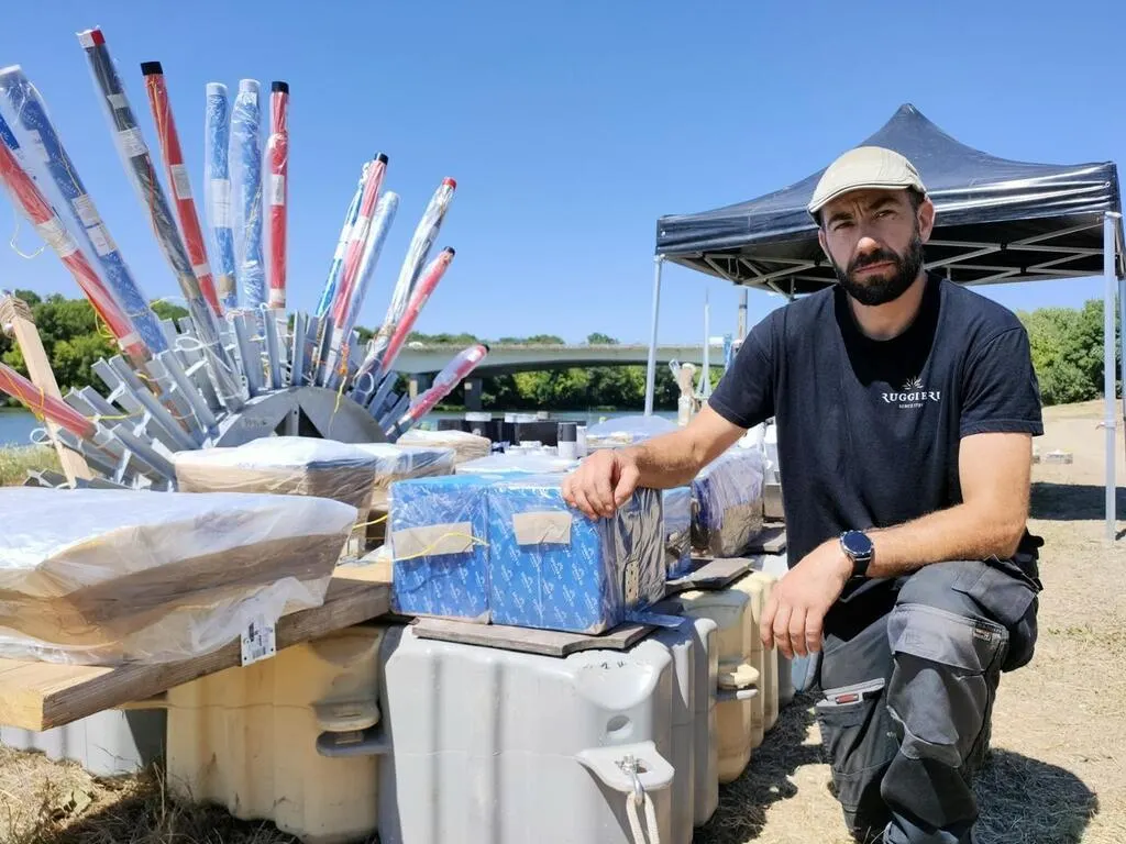 Selon Stéphane Dehen, chef de tir, les radeaux situés sur la Maine comportent moins de risques incendies que les sites situés sur la berge. © Ouest-France