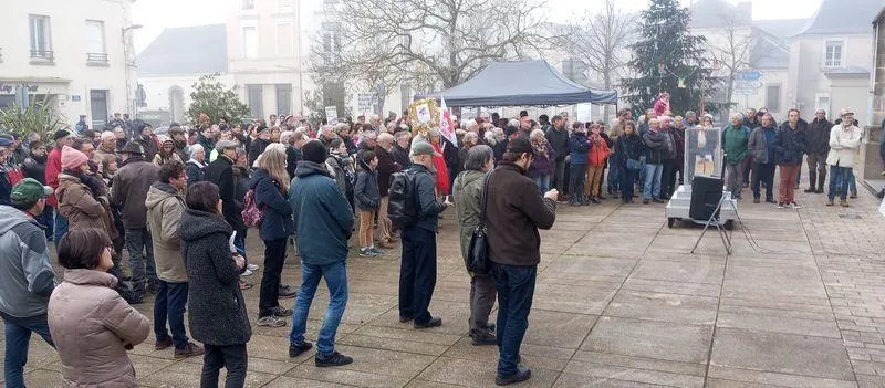 Dans la matinée de ce samedi 13 décembre, tout juste trois jours après que l’entreprise Breizh Ressources a obtenu trois permis d’exploration minière dans le Morbihan, la Loire-Atlantique et en Maine-et-Loire, une centaine de personnes s’est rassemblée à Bécon-les-Granits, à l’ouest d’Angers, dans le Maine-et-Loire, pour exprimer leur indignation.