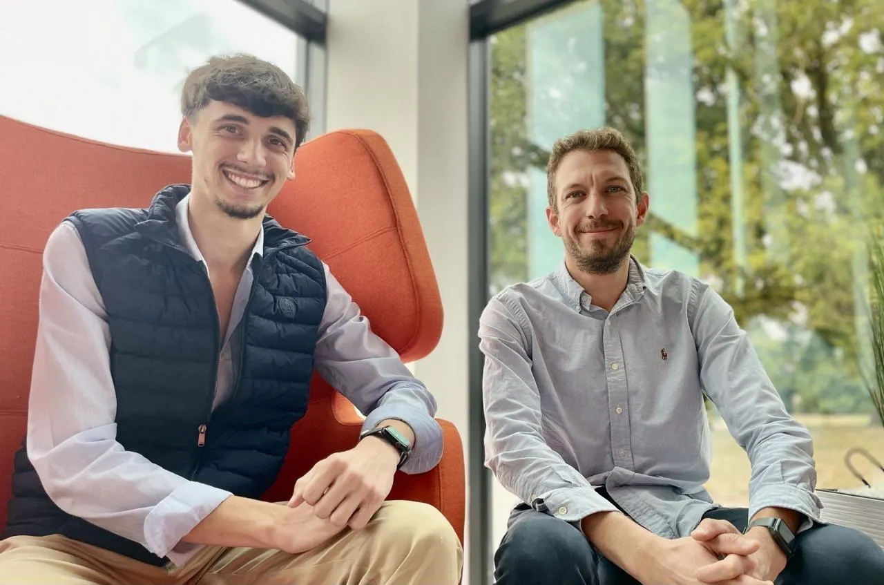 Cholet, la Filature numérique, mercredi 13 août. Deux des créateurs de Product AI, Hugo Chamard, 23 ans, spécialiste IA, épaulé par Benjamin Delalande, 38 ans, vice-président du Medef choletais et cogérant de l’agence web Enjin. © CO - Lucas ROJOUAN