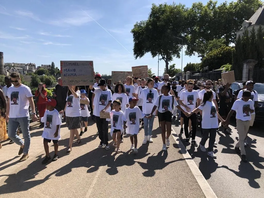 Ismaël, Manuolito et Atama ont été poignardés, dans la nuit du 15 au 16 juillet, sur l’esplanade Cœur-de-Maine, à Angers (Maine-et-Loire). Ce samedi 23 juillet, une marche blanche dans la ville a réuni près de 800 personnes, à la mémoire d’Ismaël. La famille a aussi apporté son soutien aux proches de Manuolito et d’Atama.