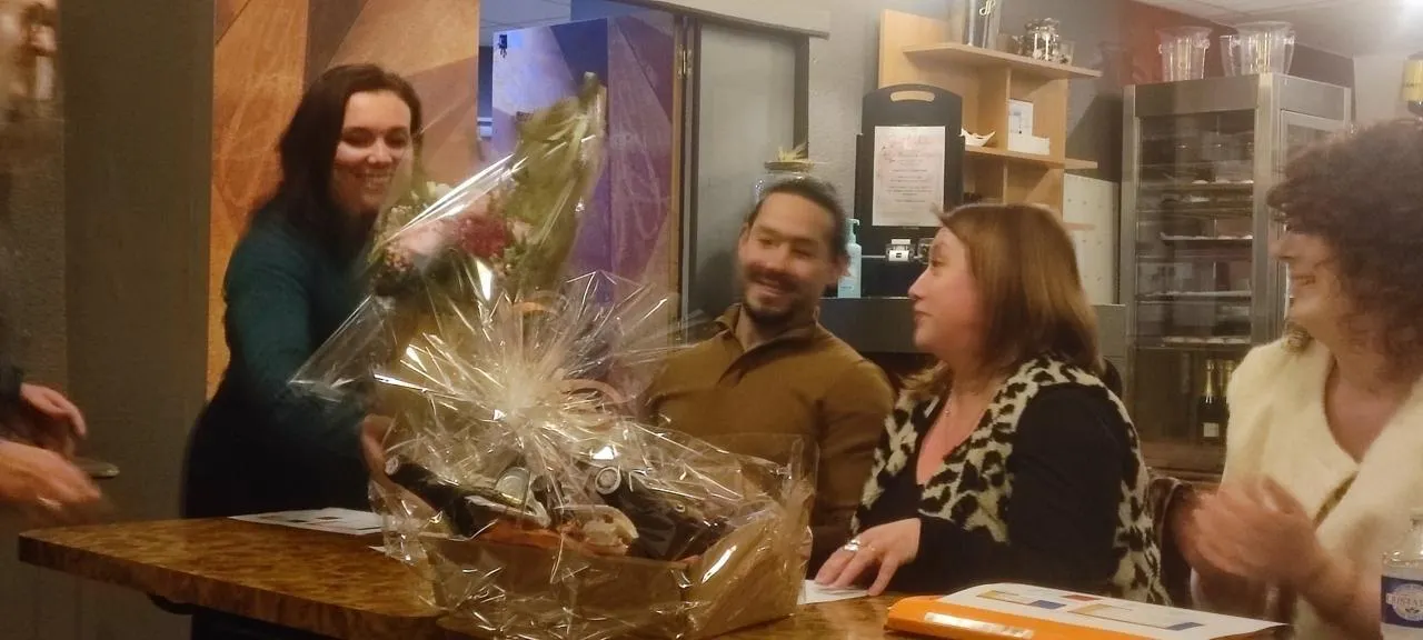 Marylise Moreau a reçu des cadeaux pour ses huit années de présence au bureau de Candé avenir entreprise. © Ouest-France