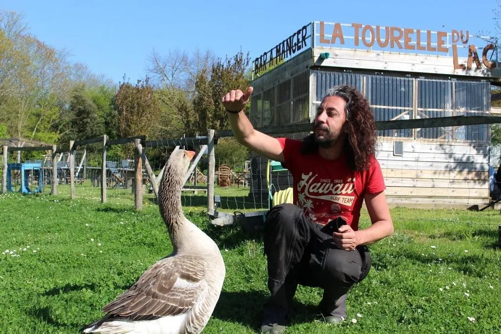 Au milieu des animaux, Harold Périer, le co-gérant de La Tourelle du lac, à La Tessoualle, a créé une guinguette « à son image ». © Ouest-France