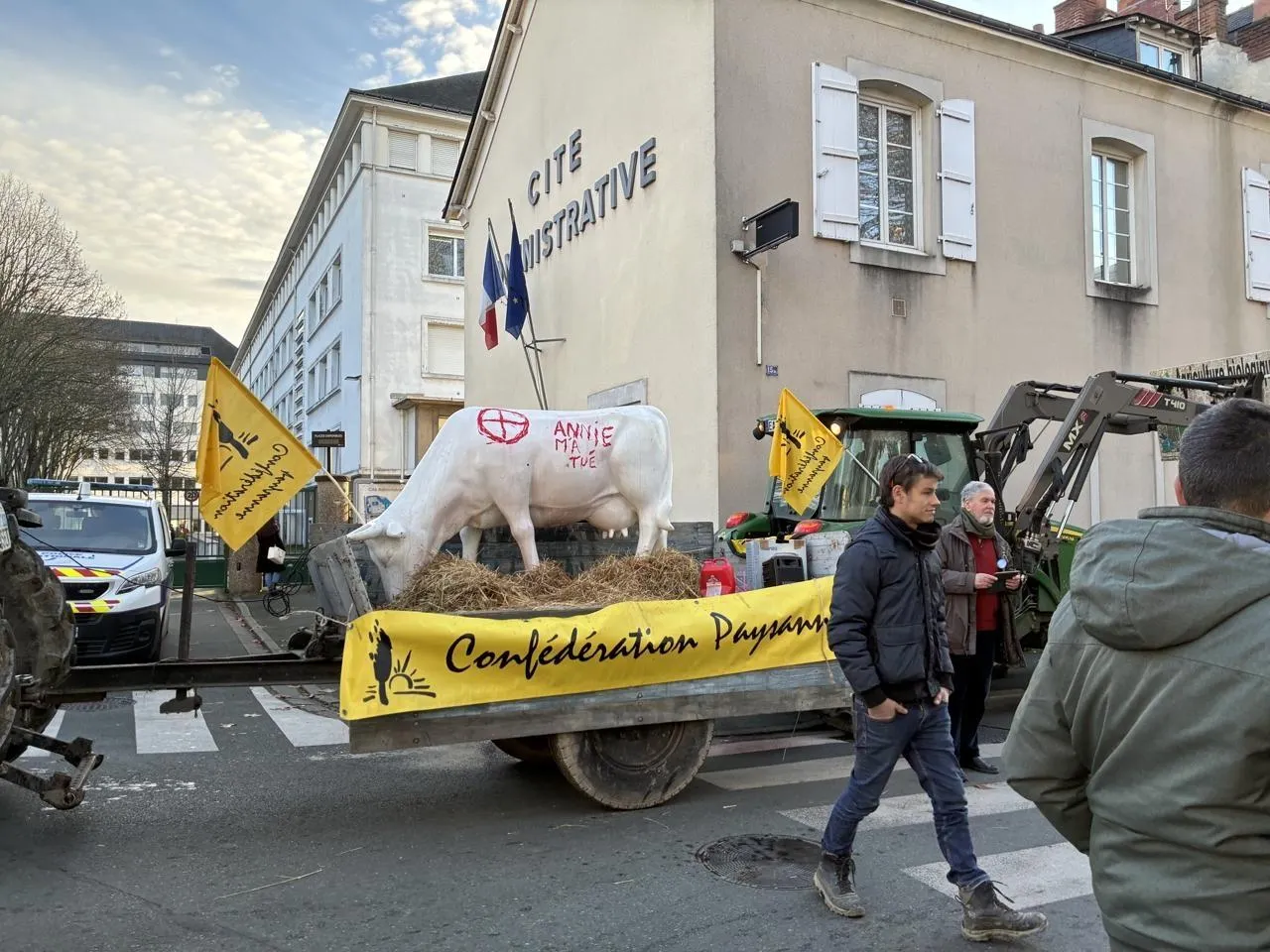 Ce mardi 16 décembre 2025, à 10 h, une centaine d’agriculteurs se sont rassemblés devant la Direction départementale de la protection des populations et la Direction départementale des territoires, à Angers (Maine-et-Loire).