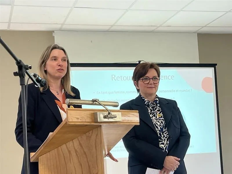 La députée Laetitia Saint-Paul et la sénatrice Corinne Bourcier ont échangé avec les femmes élues, ce vendredi 14 mars 2025, à Dampierre. © Courrier de l’Ouest
